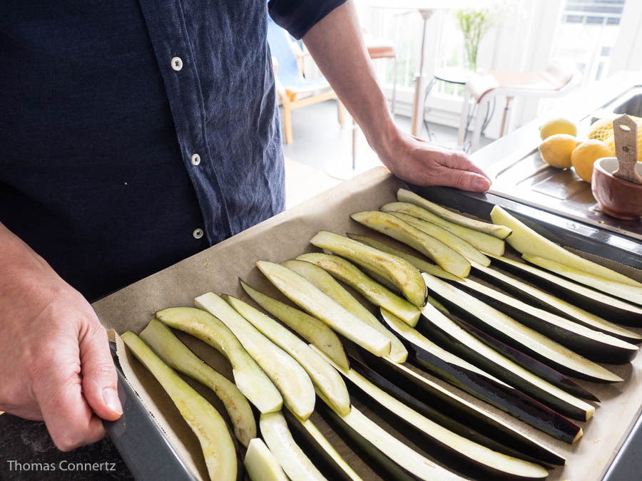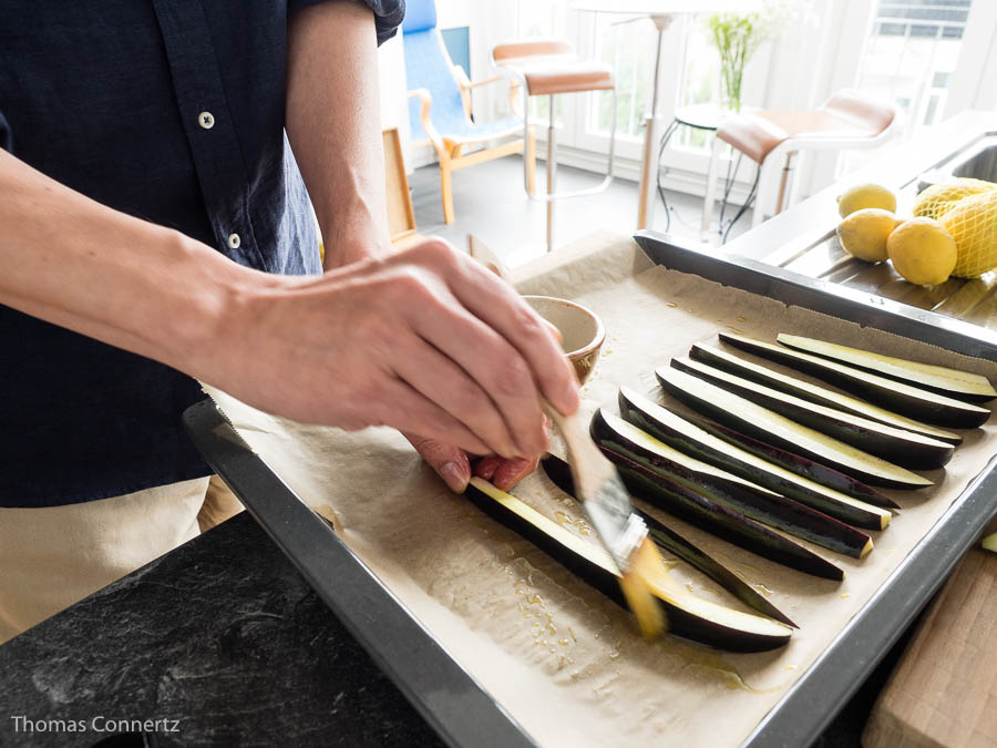 90 Minuten vor dem Servieren: Die Auberginen backen