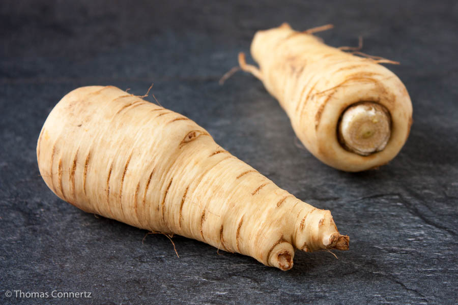 Mal abgesehen davon, dass das mit dem englischen Dauerregen ein längst widerlegtes Vorurteil ist: erstaunlicherweise passen diese unterschiedlichen Zutaten sehr gut zusammen. Die süßlich-nussig schmeckenden gekochten Pastinaken gleichen die zwieblige Schärfe der Riesenmenge Knoblauch aus, die Du in diesem Rezept verarbeitest.