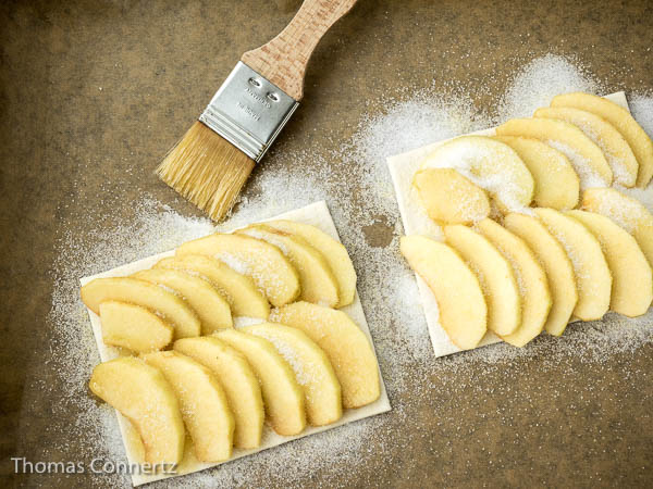 Bestreue nur so viel Fläche wie Du für den Blätterteig brauchst.