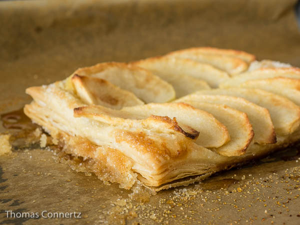 Wenige Zutaten, wenig Aufwand und trotzdem eine fantastische Köstlichkeit zum Kaffee oder als Abschluss zu einem opulenten Mahl: Zu dieser Apfeltarte kann niemand nein sagen. Normalerweise bin ich ja für’s selbermachen, aber bei Blätterteig ist der Griff ins Kühlregal erlaubt.