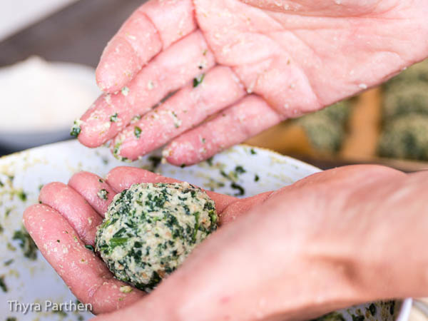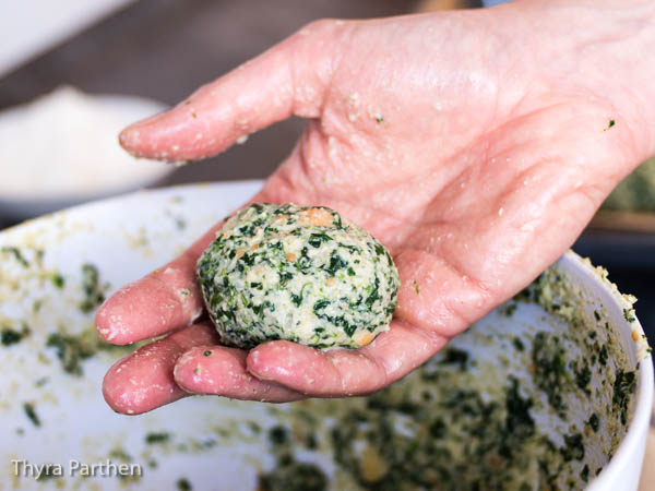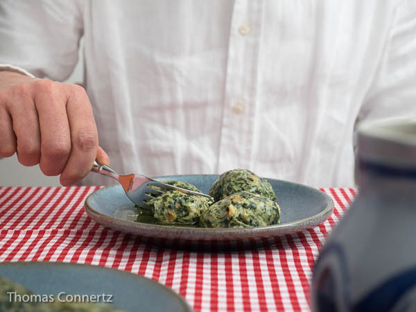 Neulich standen bei meinem liebsten südtiroler Lokal in Stuttgart Spinatknödel auf der Tageskarte. Leider ist der Inhaber zwar ein total netter Typ und hervorragender Koch, aber auch ein kleiner Chaot: die Knödel waren noch nicht fertig. Nicht so schlimm; habe ich eben etwas anderes gegessen. Aber der Appetit war geweckt und am nächsten Wochenende standen selbstgemachte Spinatknödel auf der heimischen Experimentierliste.